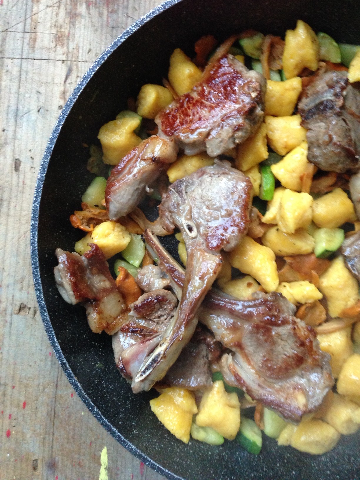 Ces gnocchis en forme de petits coussins sont tendres, pas du tout caoutchouteux. Le secret? Une méthode de préparation qui limite la manipulation de la pâte et qui, pour ne rien gâcher, s’avère rapide. On peut servir ces gnocchis de mille et une manières; j’ai opté pour une version avec de la courgette et des chanterelles sautées. Pour l’avoir expérimenté, je vous assure que c’est un vrai délice en compagnie de côtelettes d’agneau grillées. Frits, ces gnocchis font aussi fureur à l’apéro…